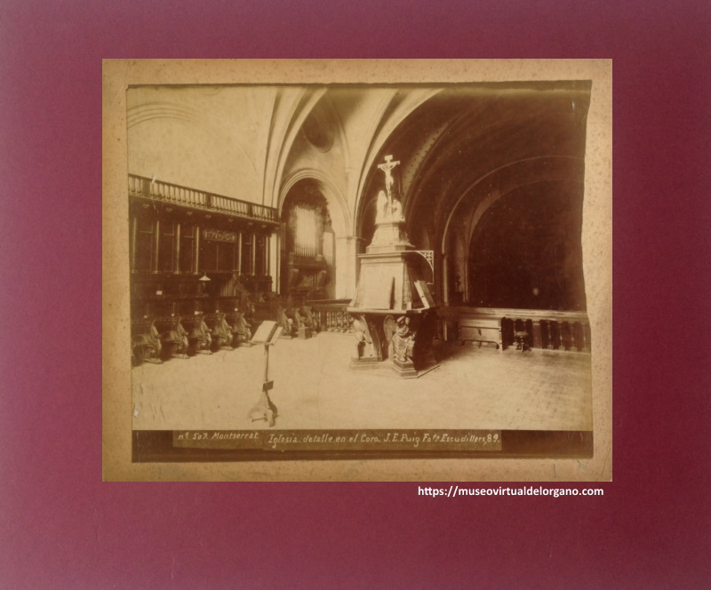 MiniaturaÓrgano Pau Obradors, coro superior de la Basílica de Montserrat. Barcelona . nº 507. Montserrat. Iglesia, detalle en el Coro. Foto José Esplugas y Puig, Escudillers, 89, entre 1887-1892