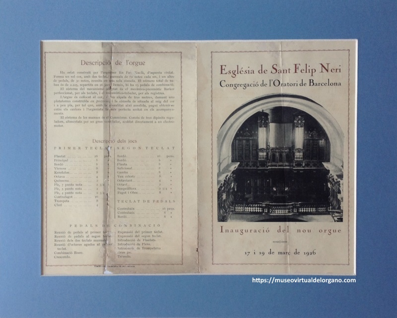 | Título | Órgano Pau Xuclà. Església de Sant Felip Neri, Congregació de l´Oratori de Barcelona. Inauguració del nou orgue |