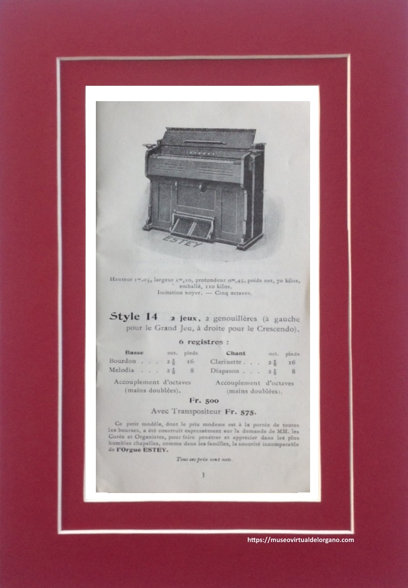 | Órgano | Harmonium Estey Style 14 |