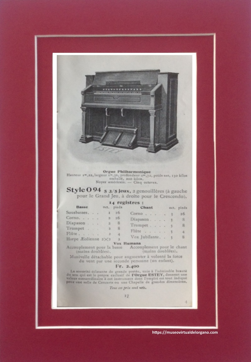 | Órgano | Harmonium Estey Style O 94 |