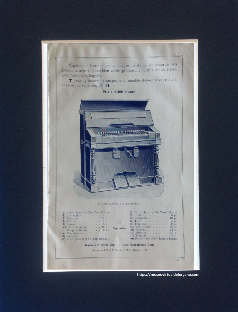 | Título | Harmonium nº 44, 7 jeux, 5 octaves, 24 registres |