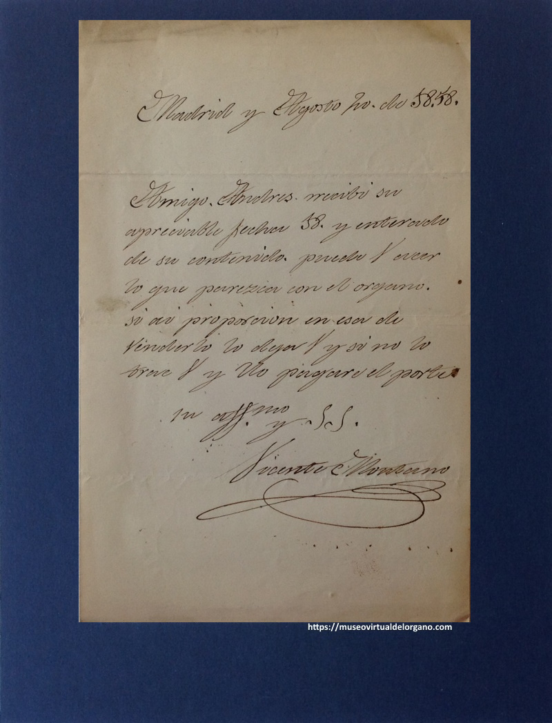 | Título | Documento referido a la venta de un órgano, dirigido a Andrés Torralba y firmado por Vicente Montano |
